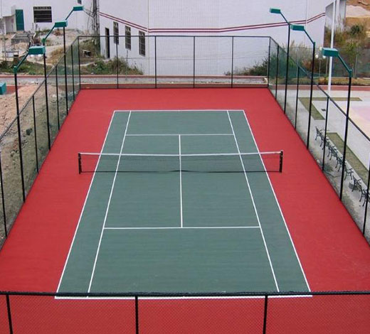 采用φ3.8鍍鋅線包塑網(wǎng),網(wǎng)孔規(guī)格45MM×45MM,網(wǎng)高4 M,立柱用φ75鋼管,橫柱用φ60鋼管刷二遍防銹專用底漆,二遍墨綠色面漆,包塑網(wǎng)用包塑扁鐵壓緊,用鍍鉻螺絲固定于網(wǎng)架上,做一扇1200×2000MM單門。在基礎(chǔ)施工時,按照預(yù)埋件施工示意圖所標(biāo)明的尺寸,要先預(yù)埋好預(yù)埋件。挖500*500的地槽,燈柱預(yù)埋件的尺寸為300*300mm,圍網(wǎng)預(yù)埋件的尺寸為 250*250mm。每個預(yù)埋件用4個12mm的鋼筋焊接固定,鋼筋的長度為400mm。鋼筋在端部彎起。 圍網(wǎng)由包塑網(wǎng)、立柱、橫桿以及連接構(gòu)件組成。網(wǎng)高4米,所以在圍網(wǎng)中間設(shè)立一跟橫桿,用φ75鋼管,主要增強圍網(wǎng)的受力。圍網(wǎng)立桿的間距由球場四周范圍的尺寸決定,一般間距不超過3.8米。也不能太小,否則增加成本。